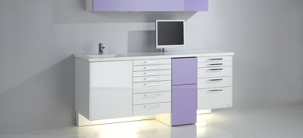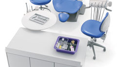 Intégration des Tubs & Trays dans la zone de soins, accessible quelle que soit la position de travail, à 2 ou 4 mains.